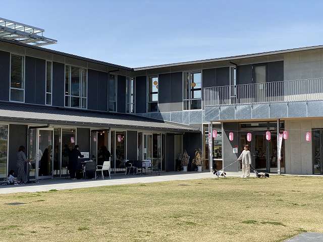 広々としたテラス、地域の食材を使ったカフェ、地域の特産品が並ぶマルシェがある井手町の地域交流拠点です。