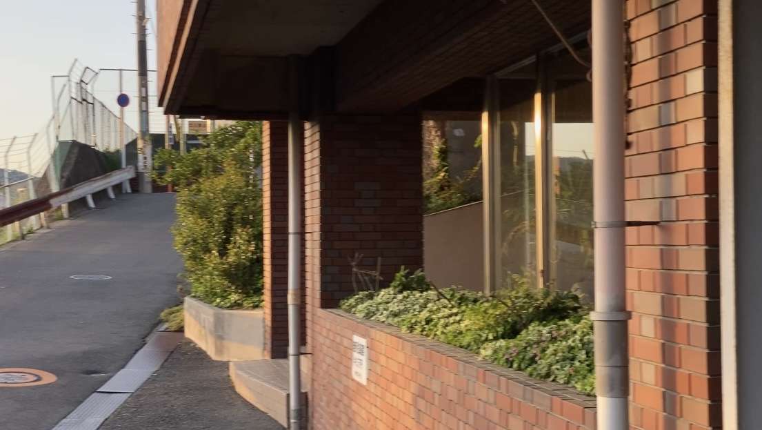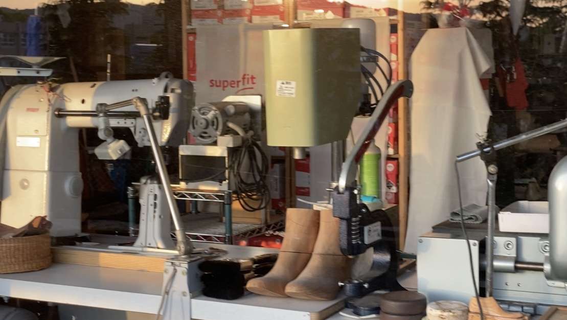 工房は、レンガの5階建てマンション「くずはパークハイツ」の路面です。ガラス張りの窓に面してミシンと漉き機を置いています。
