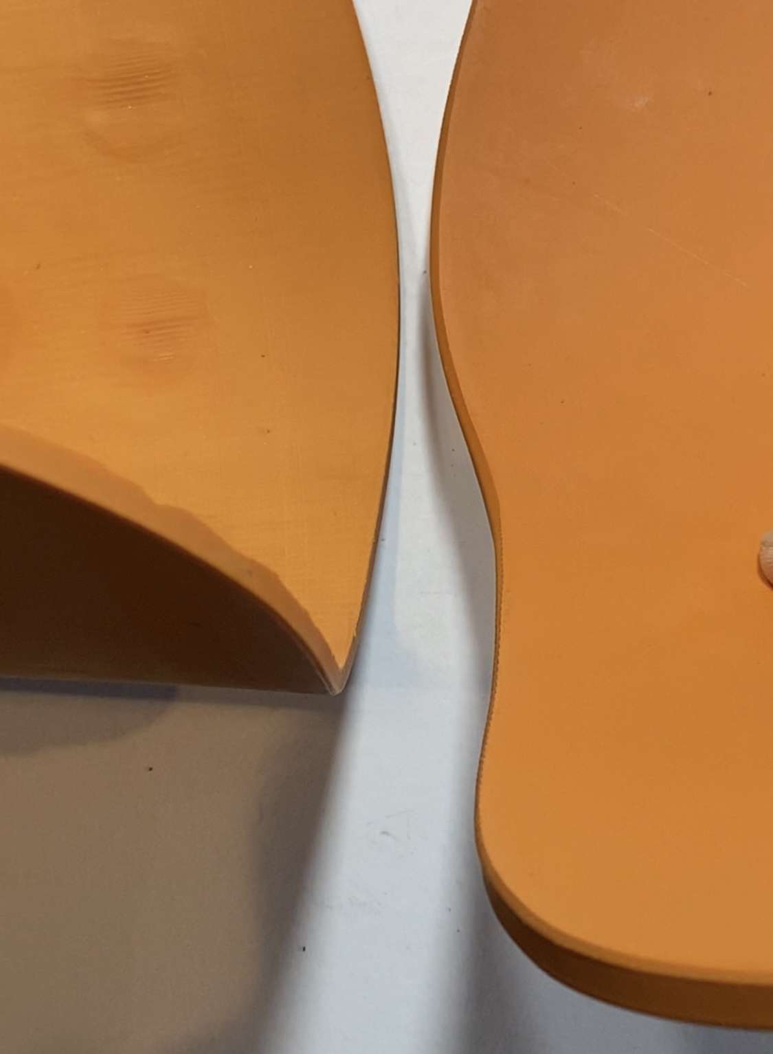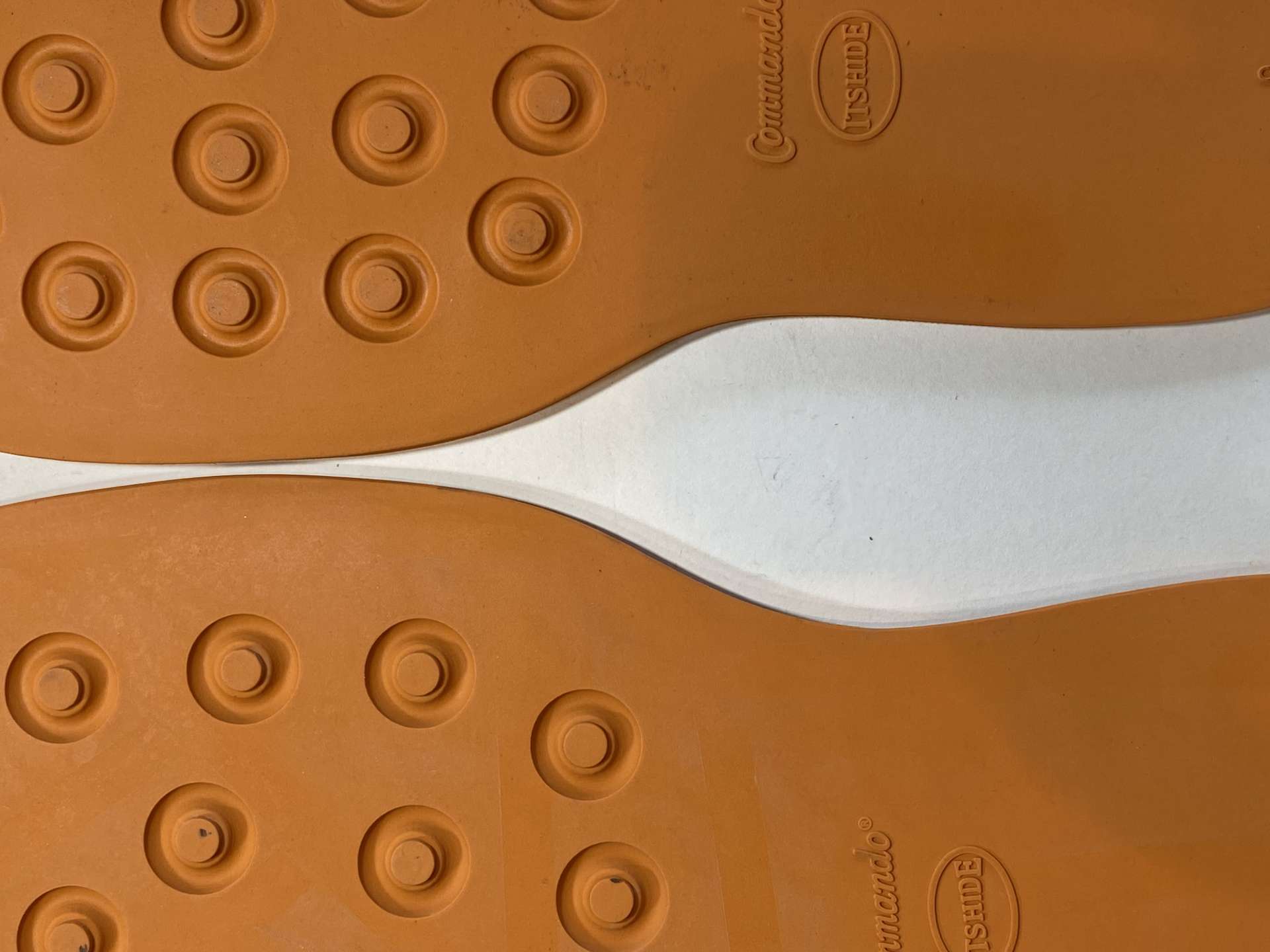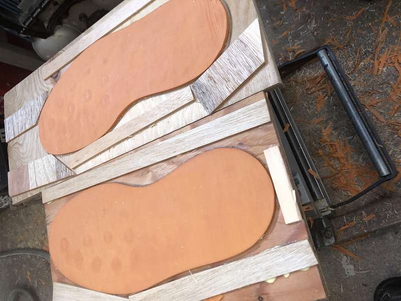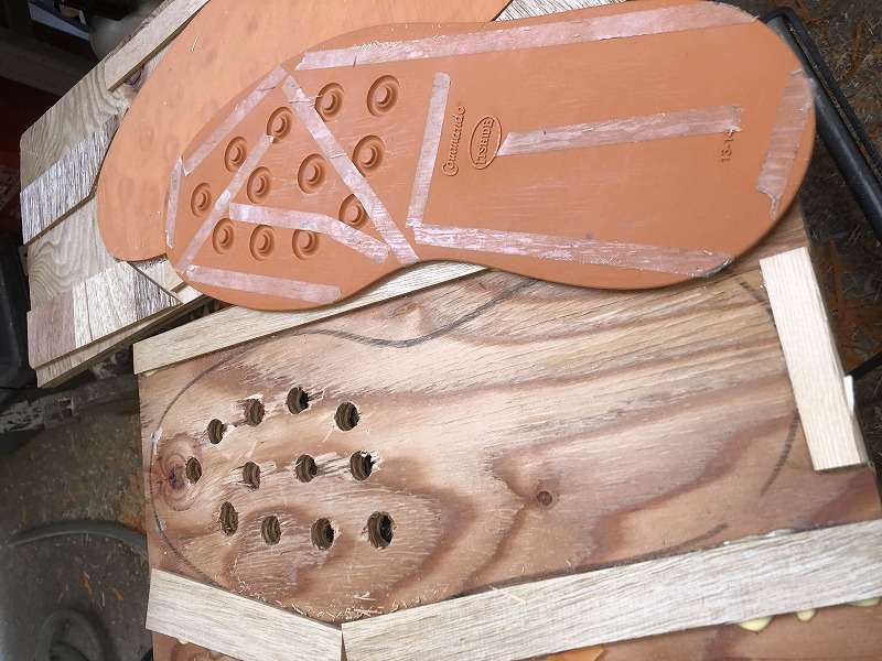 《靴の底材》 重たさと硬さ(屈曲性)が使いにくかった材料の厚みを削りました。
