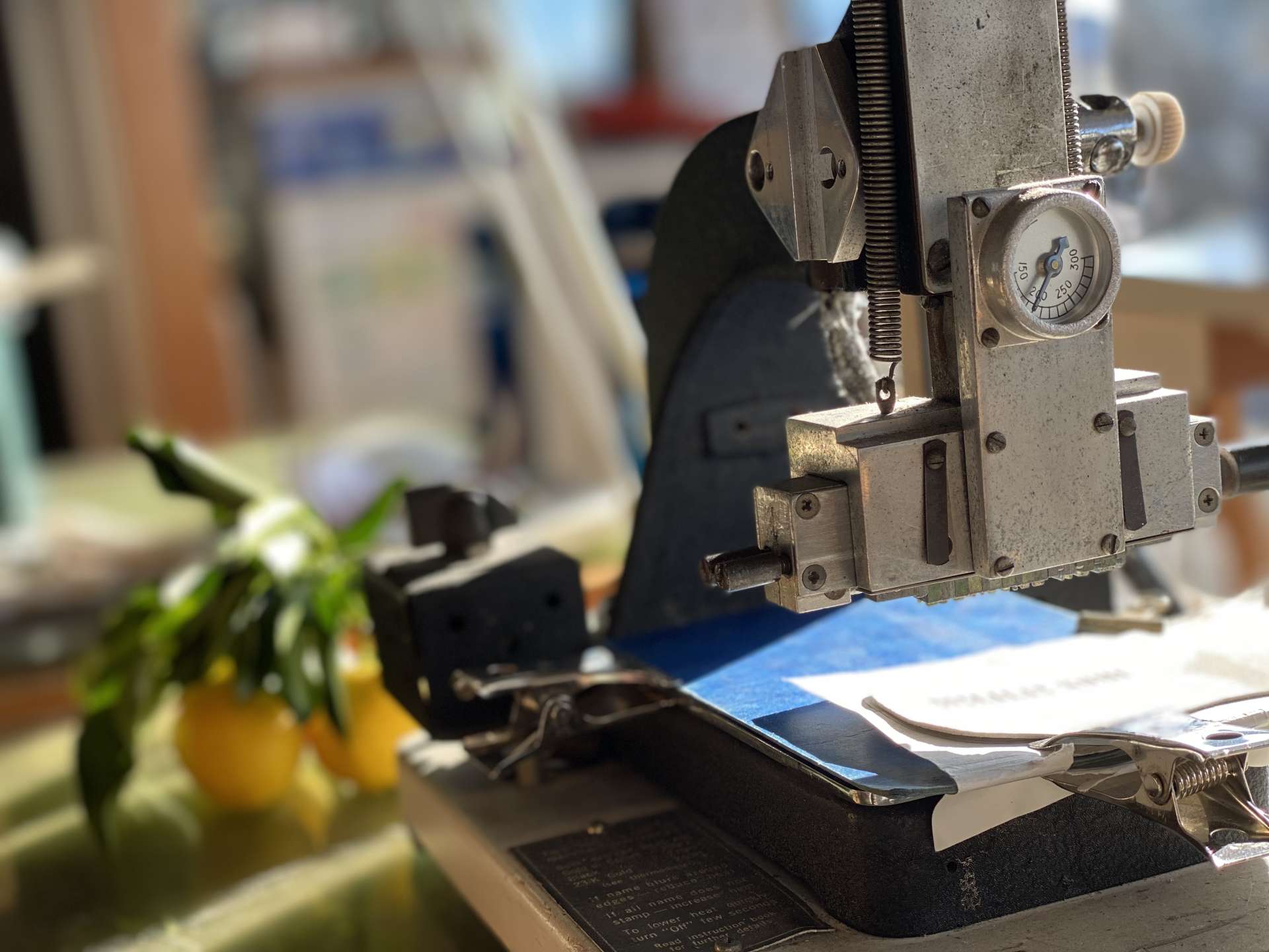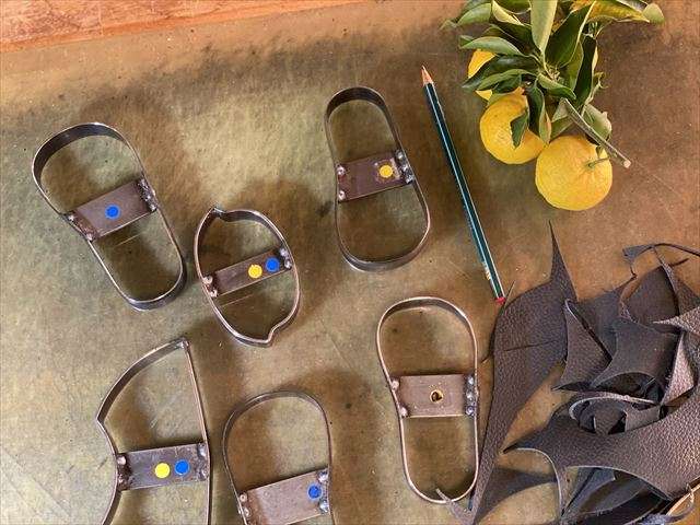 他所のノベルティで革チャームを作った時に、活版でオリジナルマークを作って刻印したな、、